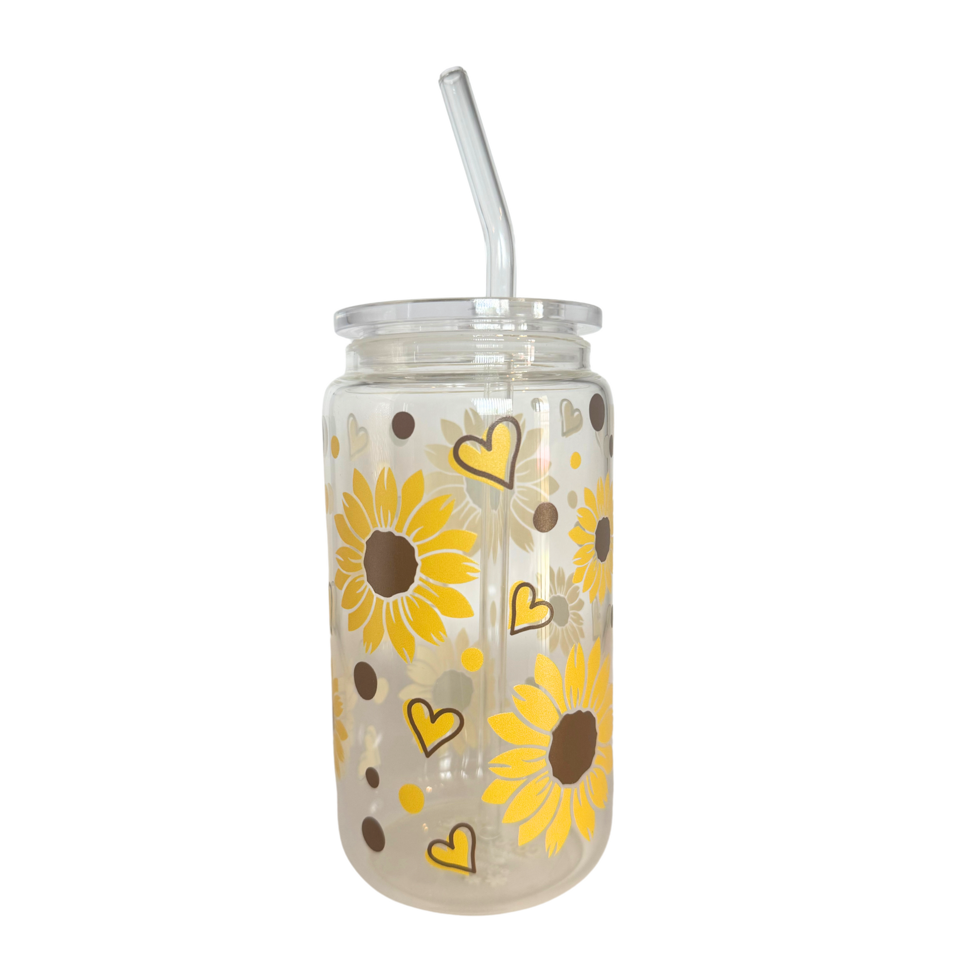 DISHWASHER SAFE- Sunflower 500ml (16oz) Glass Can Cup